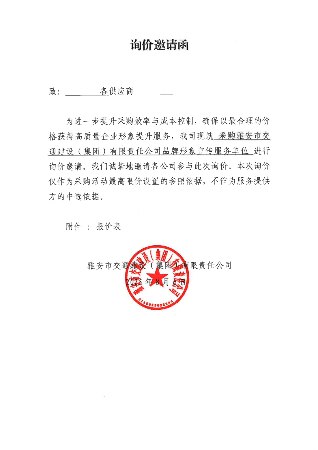 關(guān)于采購集團(tuán)品牌形象宣傳服務(wù)單位的詢價函