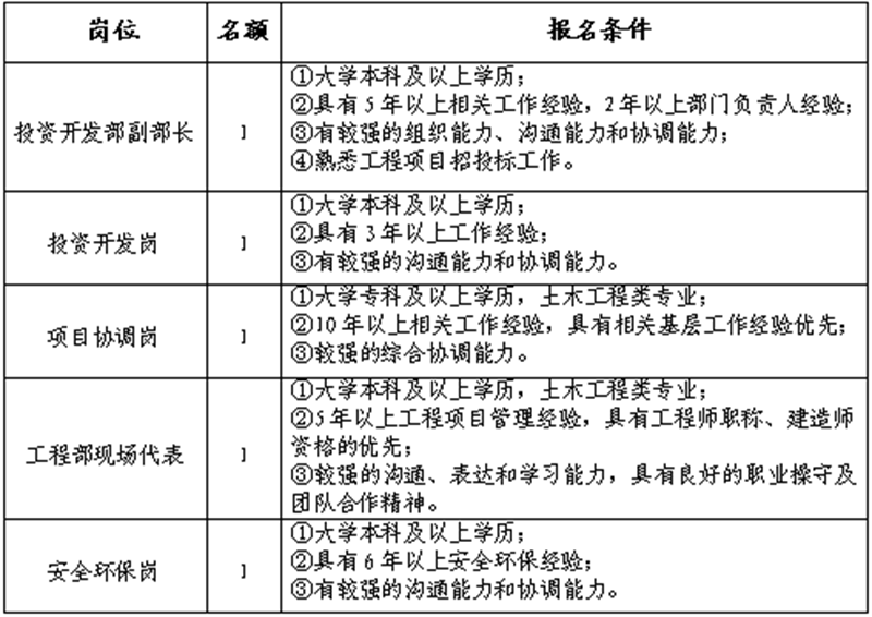 雅安交建集團(tuán)資產(chǎn)經(jīng)營(yíng)管理有限公司是雅安市重點(diǎn)國(guó)有企業(yè)雅安市交建集團(tuán)下屬子公司,主要從事企業(yè)資產(chǎn)經(jīng)營(yíng)管理;項(xiàng)目投資;土地整理等業(yè)務(wù)。根據(jù)公司發(fā)展需要,決定面向社會(huì)公開(kāi)招聘5名工作人員,現(xiàn)將有關(guān)事項(xiàng)公告如下: