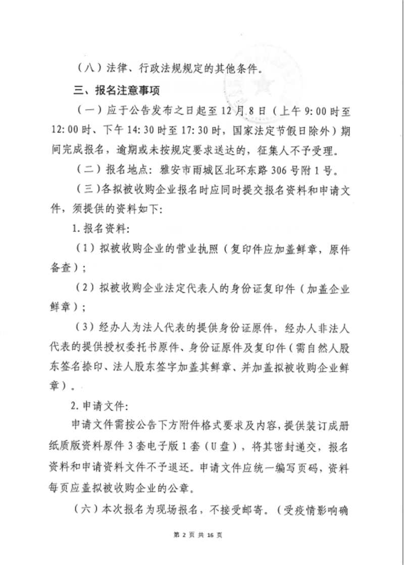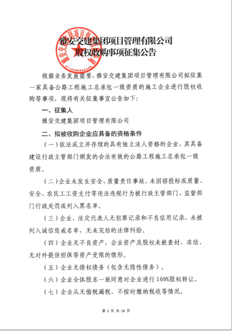 項(xiàng)目公司股權(quán)收購事項(xiàng)征集公告