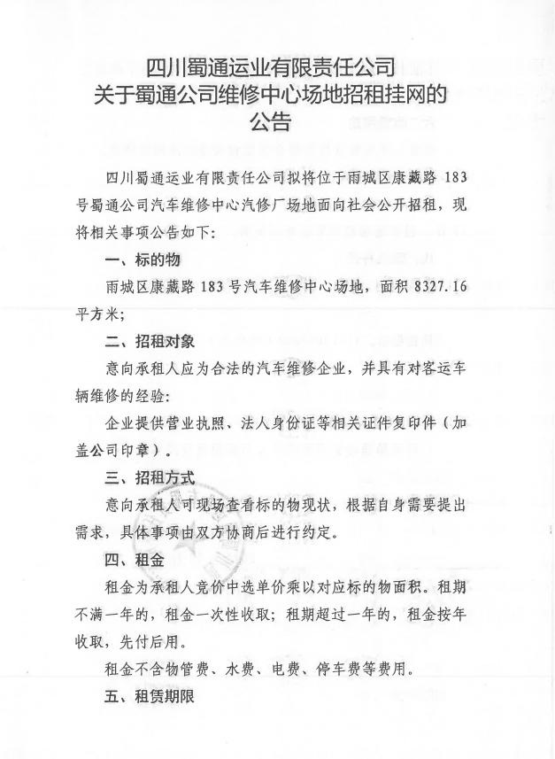 ËÄ´¨Êñͨß\(y¨´n)˜I(y¨¨)ÓÐÏÞØŸ(z¨¦)Èι«Ë¾ êP(gu¨¡n)ÓÚÊñͨ¹«Ë¾¾SÐÞÖÐÐĈöµØÕÐ×â’ì¾W(w¨£ng)µÄ ¹«¸æ