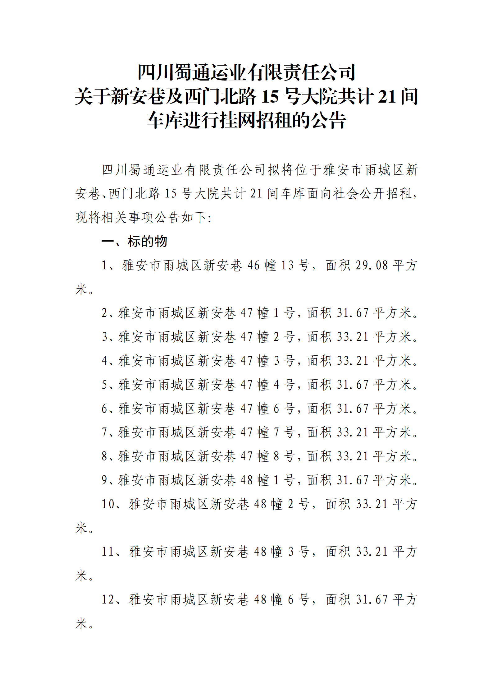 ËÄ´¨Êñͨß\˜I(y¨¨)ÓÐÏÞØŸ(z¨¦)Èι«Ë¾ êP(gu¨¡n)ÓÚа²Ïï¼°Î÷éT±±Â·15Ì–´óÔº¹²Ó‹21ég܇ŽìßM(j¨¬n)ÐÐ’ì¾W(w¨£ng)ÕÐ×âµÄ¹«¸æ