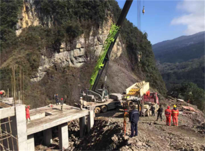 雅安交建集團路橋公司搶抓工程進度,按期完成山上首破平臺基礎(chǔ)及第一層平臺項目施工任務(wù),針對首破平臺破碎設(shè)備吊裝和安裝難度大、安裝單位無切實可行的吊裝方案的情況,積極與丹石建材公司、安裝單位相關(guān)人員一同到達現(xiàn)場協(xié)商確定吊裝方案,幫助聯(lián)系吊裝單位到現(xiàn)場探討吊裝技術(shù)方案,并平整出吊裝工作面。在2019年1月11日,順利完成設(shè)備的吊裝安置工作。