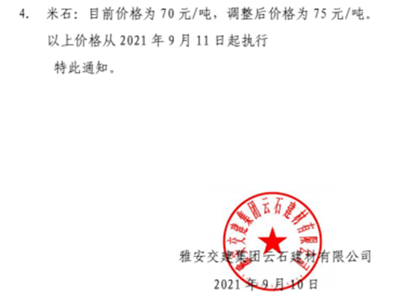 ÑŰ²½»½¨¼¯ˆFµ¤Ê¯¹«Ë¾êP(gu¨¡n)ÓÚÕ{(di¨¤o)ÕûïL»¯Ê¯»Ò?gu¨©)rµVʯÁÏäNÊÛƒr¸ñµÄ֪ͨ